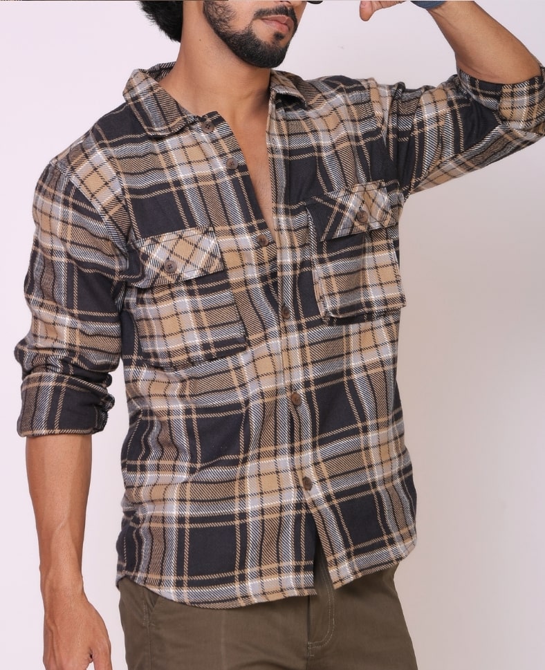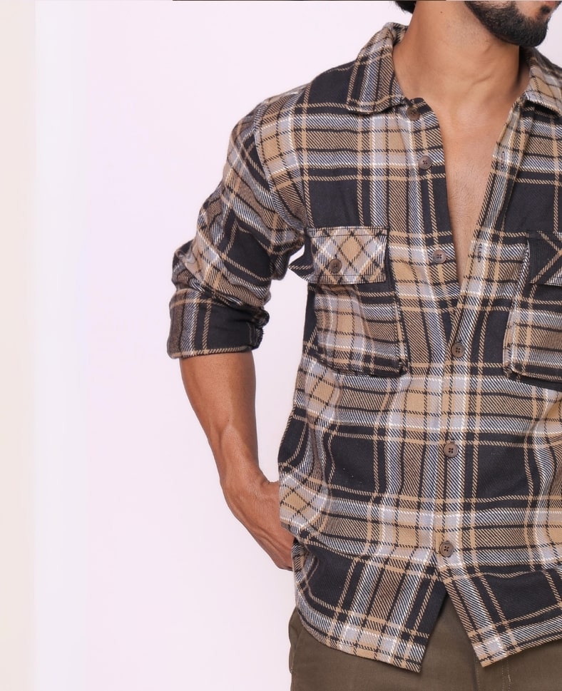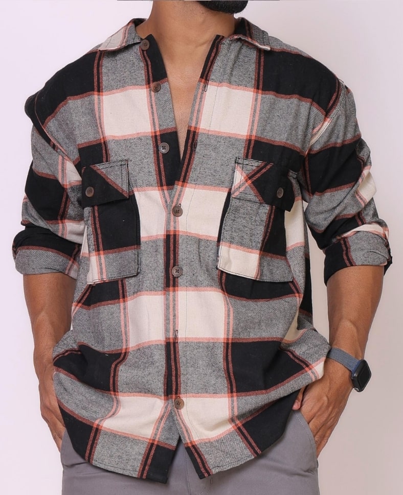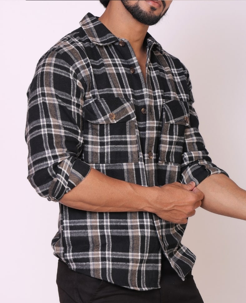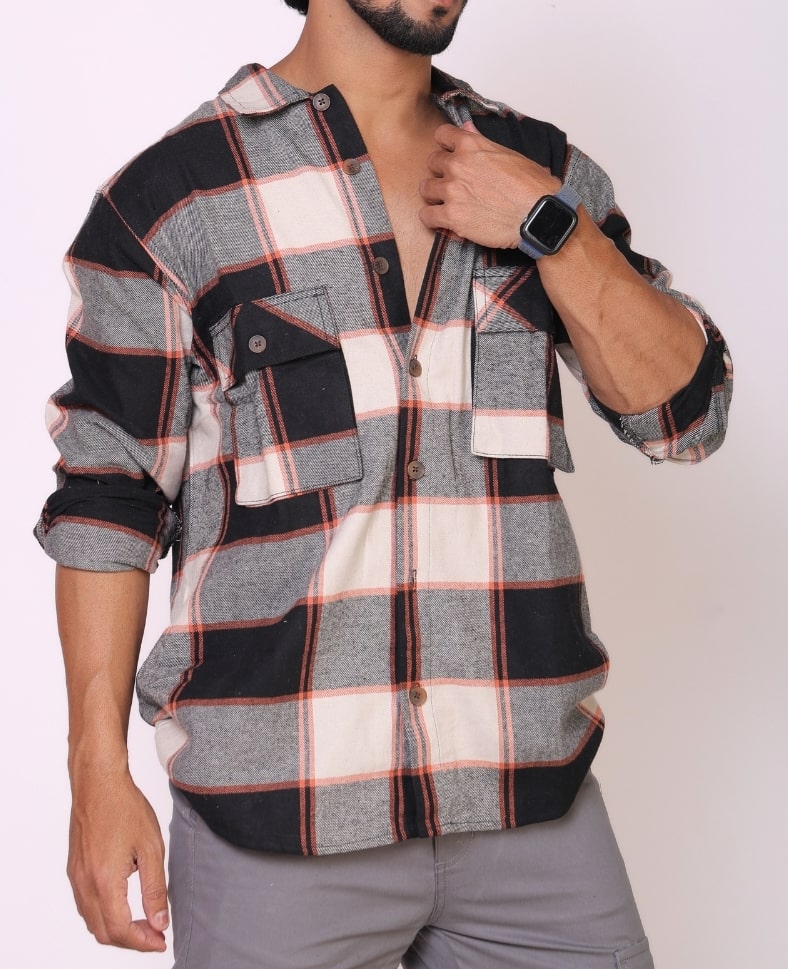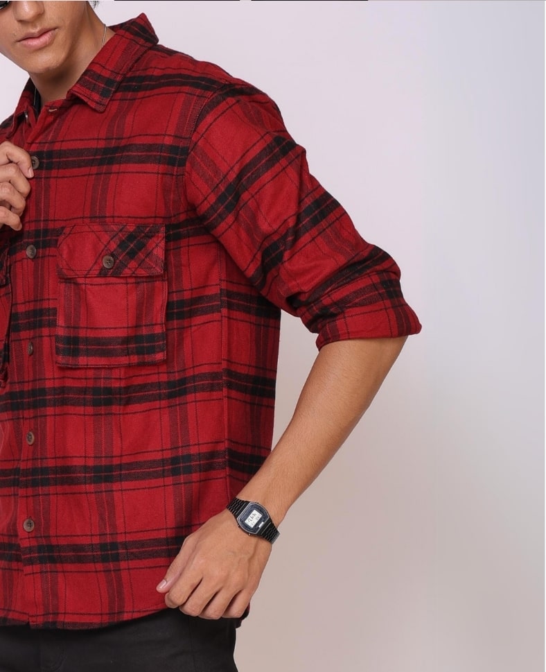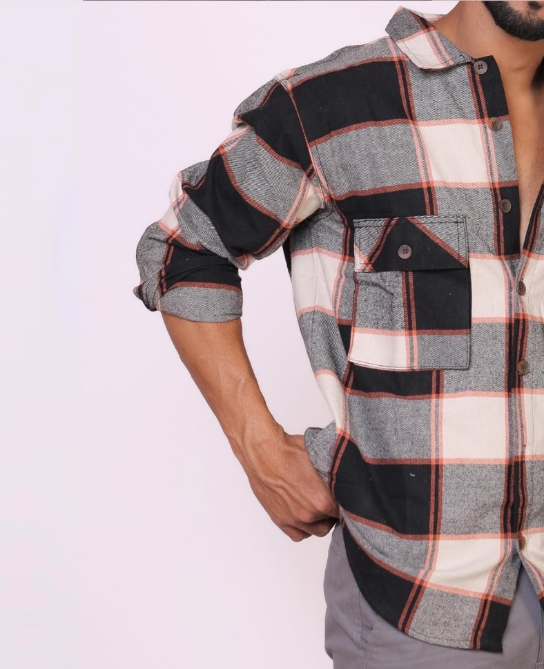 This Flannel Checked Shirt offers a versatile and stylish addition to any wardrobe. The unique design, the checked pattern and functional front pocket provides a timeless and classy look. Made from high quality materials. this shirt is durable and comfortable for winter season. Perfect for casual or formal occasions , this shirt is a must-have for any fashion conscious individual.