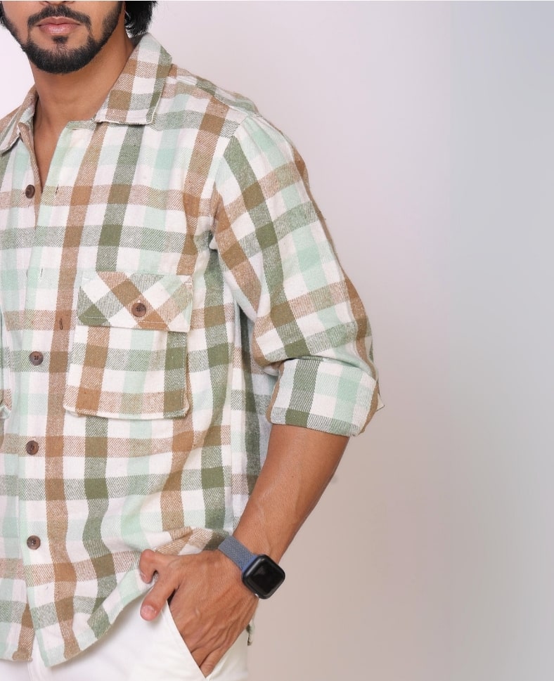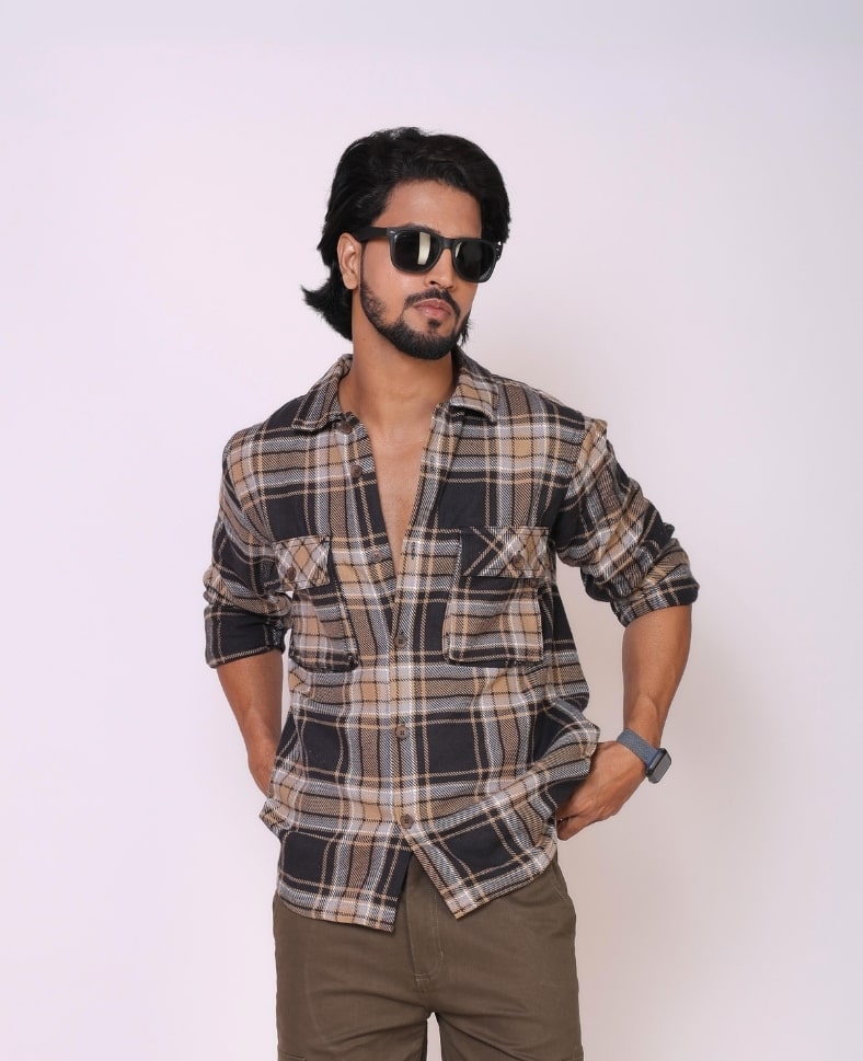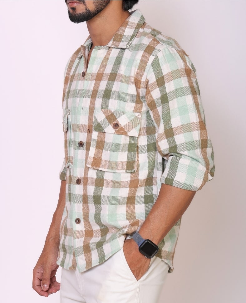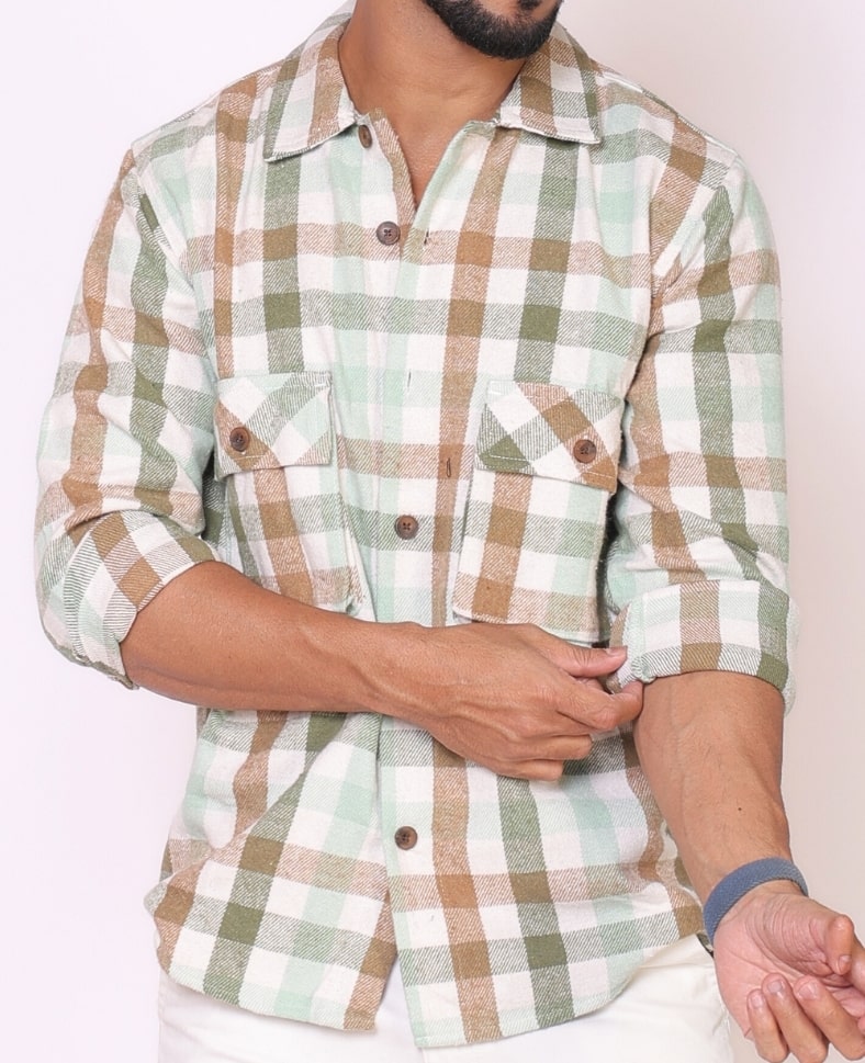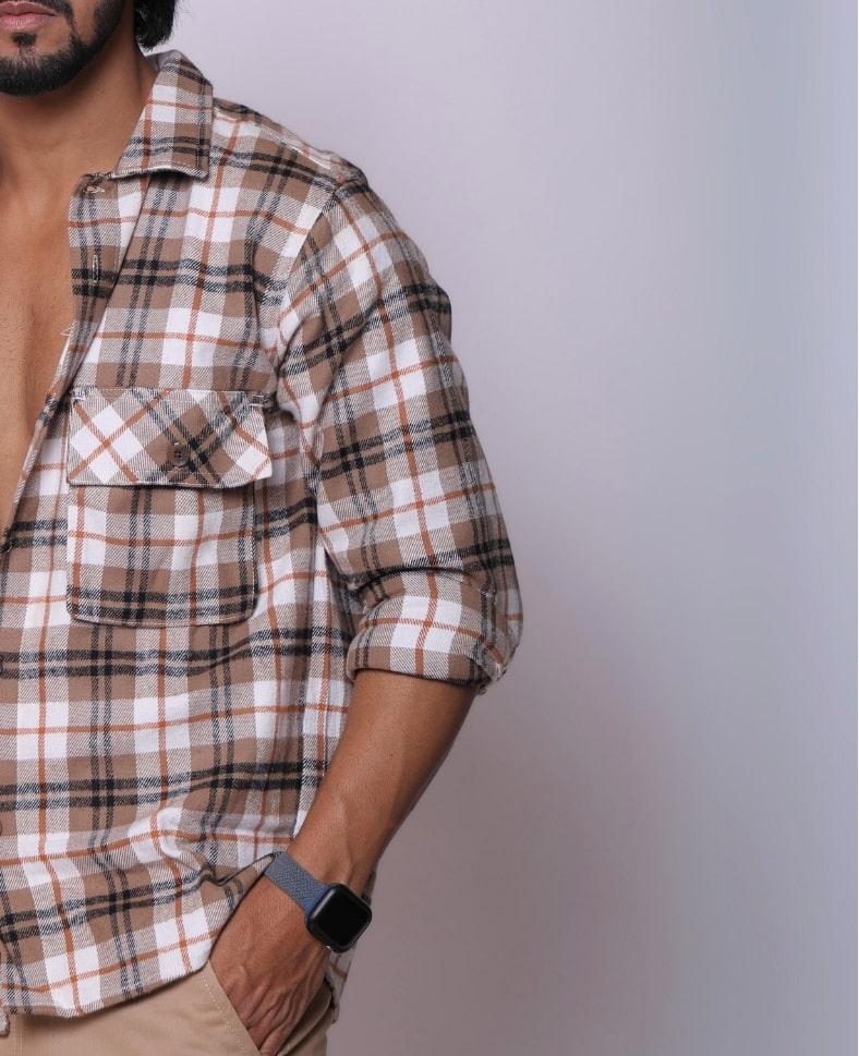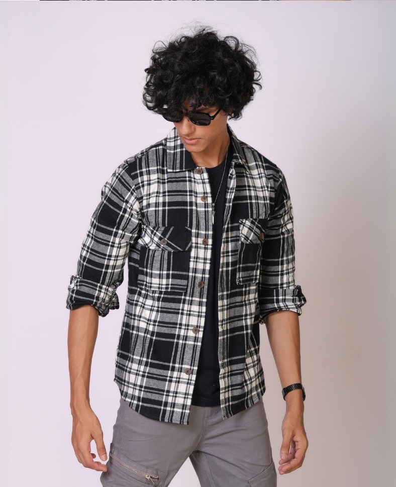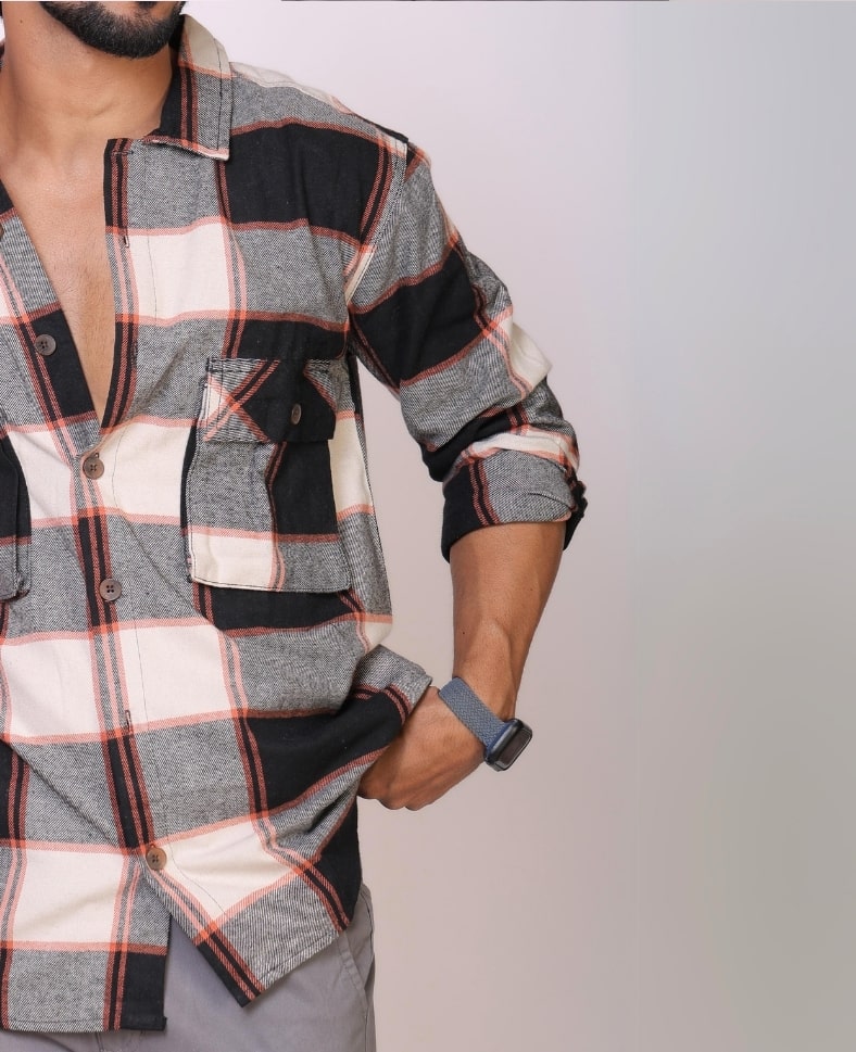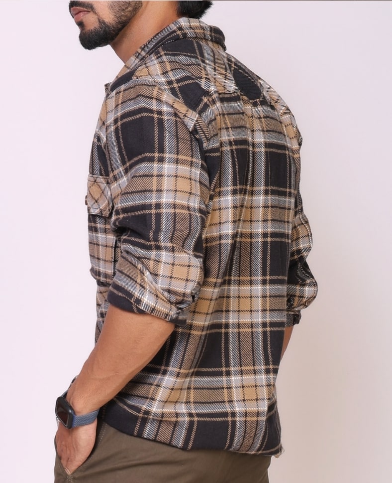 This Flannel Checked Shirt offers a versatile and stylish addition to any wardrobe. The unique design, the checked pattern and functional front pocket provides a timeless and classy look. Made from high quality materials. this shirt is durable and comfortable for winter season. Perfect for casual or formal occasions , this shirt is a must-have for any fashion conscious individual.